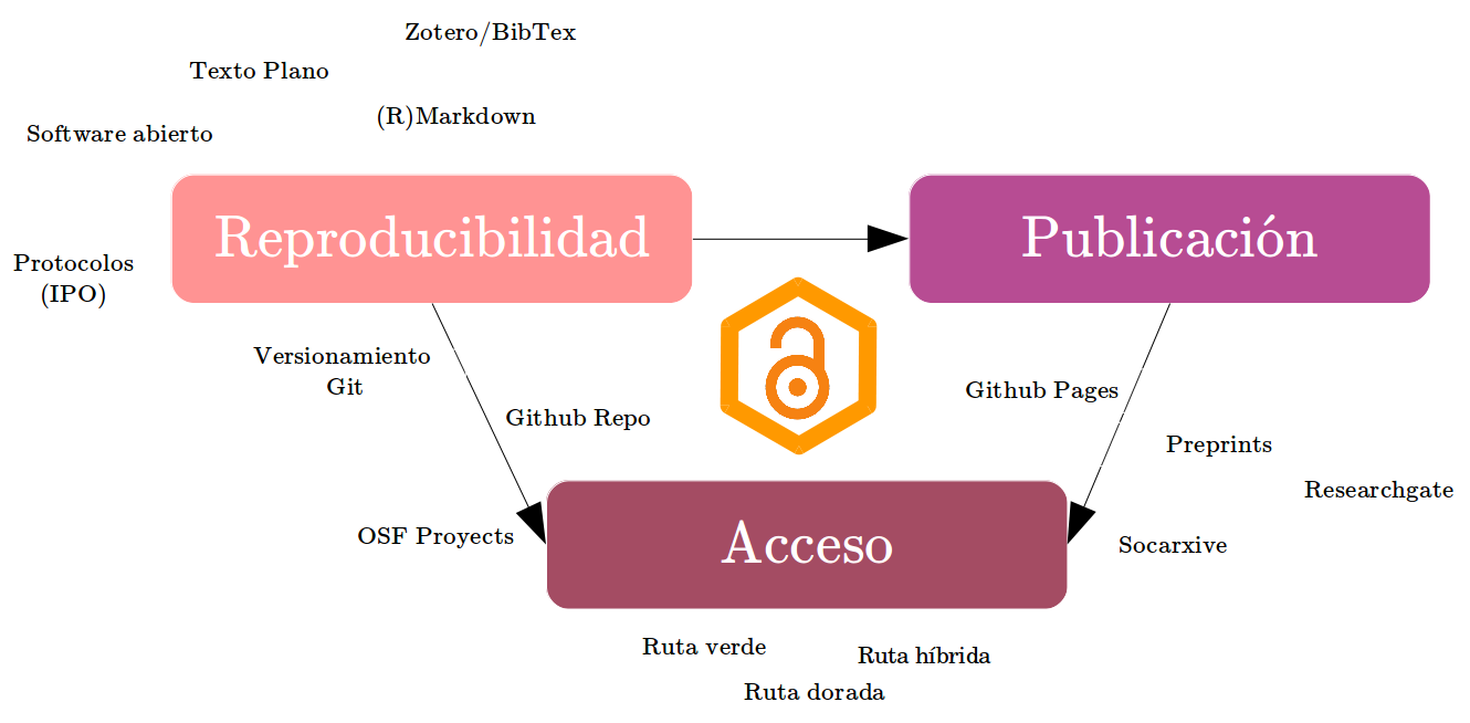 class: front <!--- Para correr en ATOM - open terminal, abrir R (simplemente, R y enter) - rmarkdown::render('static/docpres/07_interacciones/7interacciones.Rmd', 'xaringan::moon_reader') About macros.js: permite escalar las imágenes como [scale 50%](path to image), hay si que grabar ese archivo js en el directorio. ---> .pull-left-wide[ # Ciencia Abierta e Investigación Social ## Juan Carlos Castillo ## Sociología FACSO - UChile ## 2do Sem 2025 ## [.orange[Curso Ética de Investigación en Ciencias Sociales]]() ] .pull-right-narrow[ .right[ <br>  ] ] --- layout: true class: animated, fadeIn --- class: roja, middle, right # .yellow[¿Crisis de apertura en ciencia?] ## 1. Transparencia ## 2. Reproducibilidad ## 3. Acceso --- class: roja, middle, right # .yellow[¿Crisis de apertura en ciencia?] ## 1. .yellow[Transparencia] ## 2. Reproducibilidad ## 3. Acceso --- ## Flujo de investigación científica  --- ## Flujo de investigación científica y ciencia abierta  --- ## Flujo de investigación científica y ciencia abierta  --- ## Transparencia 1: Diseño - Presión por publicar resultados "relevantes" (rechazar `\(H_0\)` ) -- - .red[HARKing]: Hypothesis After the Results are Known - Se adaptan las hipótesis y teorías a los resultados - Barreras al avance del conocimiento ya que solo conocemos lo que "resulta" --- ## Transparencia 2: Datos - Dificultades en el acceso y la documentación de la información levantada en la investigación -- - Barreras la reproducibilidad y al avance de investigaciones con datos muchas veces levantados con fondos públicos --- class: roja, middle, right # .yellow[¿Crisis de apertura en ciencia?] ## 1. Transparencia ## 2. .yellow[Reproducibilidad] ## 3. Acceso --- # Reproducibilidad  --- ### ¿Qué porcentaje de los estudios publicados son reproducibles? .pull-left-wide[  ] .pull-right-narrow[ <br> <br> <br> <br> <br> <br> ... alrededor de un **40%!** (... varía por disciplina) ] --- # ¿Por qué se ocurre la crisis de reproducibilidad? Algunas razones: - pobre documentación metodológica - sesgo hacia búsqueda y publicación de resultados significativos (p-hacking), atribuido a la presión por publicar - en algunos casos, falseamiento de datos/análisis --- class: roja, middle, right # .yellow[¿Crisis de apertura en ciencia?] ## 1. Transparencia ## 2. Reproducibilidad ## 3. .yellow[Acceso] --- ## Acceso  --- ### El ciclo actual de publicación científica .center[  ] .right[ .tiny[ (Adaptado de: [https://creativecommons.org/about/program-areas/open-access/](https://creativecommons.org/about/program-areas/open-access/)) ] ] --- class: middle, center .pull-left[ ## Barreras de pago ] .pull-right[ .left[  ] ] --- # Modelo de publicación científica .pull-left-narrow[ <br>  ] .pull-right-wide[ - las vacas hacen leche(se ordeñan solas) - otras vacas revisan la leche (gratis) - las vacas le pagan al granjero para distribuir la leche - luego el granjero le vende la leche de vuelta a las vacas ] --- ### Márgenes de ganancia .center[  ] --- .pull-left-narrow[ ## Beneficios acceso abierto <br> <br> .tiny[ Adaptado de: [http://whyopenresearch.org/#](http://whyopenresearch.org/) ] ] .pull-right-wide[ .center[  ] ] --- ## Enfrentando la crisis - tema de **ética** científica y también de **eficiencia** - por ahora en Chile, la apertura depende de la **voluntad de los investigadores**, pero ... - crecientemente financistas y medios de publicación se hacen **más exigentes**, gobiernos extranjeros ya han implementado políticas de transparencia, acceso y reproducibilidad. - necesidad de **herramientas metodológicas** ] ] --- class: roja, middle, right # Principios de la ciencia --- ## Ciencia abierta: Vuelta a los principios de la ciencia (Merton) - **Universalismo**: cualquier persona puede contribuir al conocimiento científico, independiente de su origen. -- - **Comunalidad**: los hallazgos de la ciencia pertenecen a la comunidad y no a quién los descubrió. -- - **Desinterés**: la conducta de investigadores debe estar orientada por la búsqueda de la verdad, no con intereses personales ni monetarios. -- - **Escepticismo organizado**: los hallazgos no se aceptan porque sí, se requieren pruebas. --- # ¿Se cumplen los principios de la ciencia? - Investigación de Anderson et al (2007), pregunta a más de 3000 investigadores sobre cumplimiento de principios de la ciencia Mertonianos (agregan dos más: gobernanza y calidad) - Dos grupos de académicos: carrera temprana y carrera intermedia - Para todos los principios identifica normas y contranormas: --- ### Normas y contra-normas de la ética científica (Anderson, 2007) .center[  ] --- ## Normas y contra-normas de la ética científica (Anderson, 2007) .center[  ] --- class: roja, middle, right # Problemas de apertura --- class: center  --- class: center  .small[ Fuente: [Baker (2016) 1,500 scientists lift the lid on reproducibility - Nature](https://www.nature.com/news/1-500-scientists-lift-the-lid-on-reproducibility-1.19970)] --- class: center  .small[ Fuente: [Baker (2016) 1,500 scientists lift the lid on reproducibility - Nature](https://www.nature.com/news/1-500-scientists-lift-the-lid-on-reproducibility-1.19970)] --- .pull-left-wide[  ] .tiny[ .pull-right-narrow[ [Knudtson, K. L., et al (2019). Survey on Scientific Shared Resource Rigor and Reproducibility. Journal of Biomolecular Techniques : JBT, 30(3), 36–44. https://doi.org/10.7171/jbt.19-3003-001 ](https://pubmed.ncbi.nlm.nih.gov/31452645/) ] ] --- .pull-left[ ]  --- class: inverse bottom right # Presión por publicar --- .center[  ] .tiny[ [Koch, T., & Vanderstraeten, R. (2019). Internationalizing a national scientific community? Changes in publication and citation practices in Chile, 1976–2015. Current Sociology, 67(5), 723–741. https://doi.org/10.1177/0011392118807514](https://journals.sagepub.com/doi/10.1177/0011392118807514) ] --- # Cultura de "publica o perece" (publish or perish) ## Posibles correlatos: - Temor a que "te roben l